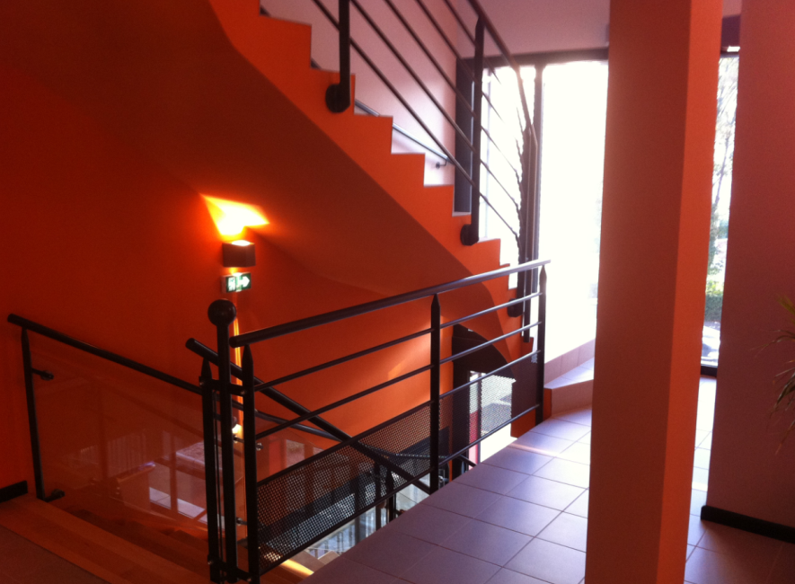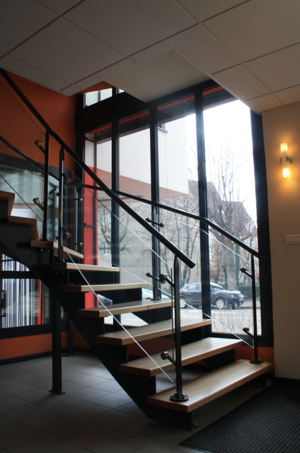 Ce chantier comprend un escalier un quart tournant équipé de marches en bois ainsi qu’un portail barreaudé.